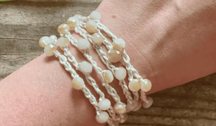 I love the beads on this beautiful crocheted bracelet by Days Crochet NC. Honestly, this is the ultimate bracelet if you're looking for something a little boho and beachy. If you have your eye on easy crochet bracelet patterns, you can't beat this! I love the simple crochet stitches and the adjustability to fit every sized wrist!