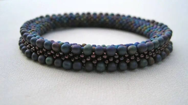 This is such a beautiful piece of jewelry by Wearable Art Emporium! This pattern is made with glass seed beads and fringe beads which gives it different gorgeous sizing. You can't even see the yarn in the finished bracelet, so it might give you some flexibility using your scrap yarn. This is a more advanced pattern using the slip stitch method of bead crochet. The finished result makes the extra effort so worth it!