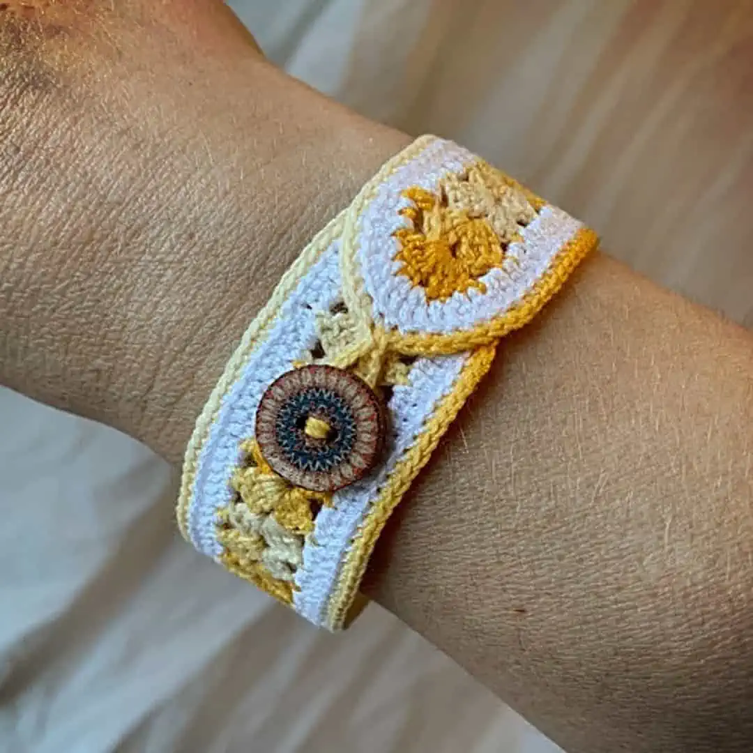 If you are looking for aesthetic bracelets, look no further than this classy bracelet pattern by On The Hook. I also love that this has a button closure on the end of the bracelet so that it doesn't get stretched out from taking on and off. This easy pattern features simple stitches and would look fantastic in cotton yarn.