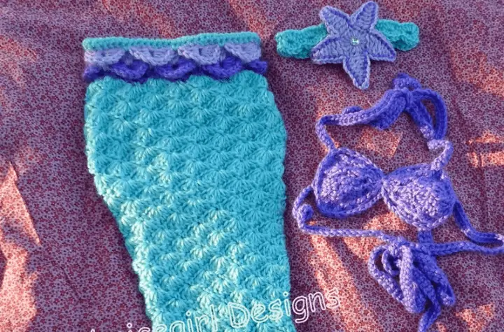 Are you looking for an Ariel baby costume? Look no further than this cute mermaid costume! I love the little tail of this pattern as well as the little star headband! Such a fun touch!