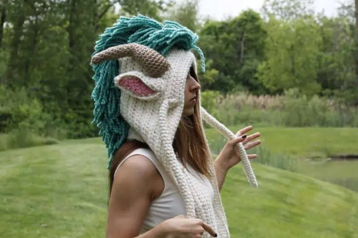 If you want to keep your head warm this Halloween, the River Spirit Dragon hood is a super cute choice! This is such a fun crochet hat pattern to make and it would be fun to wear to a Halloween party too!