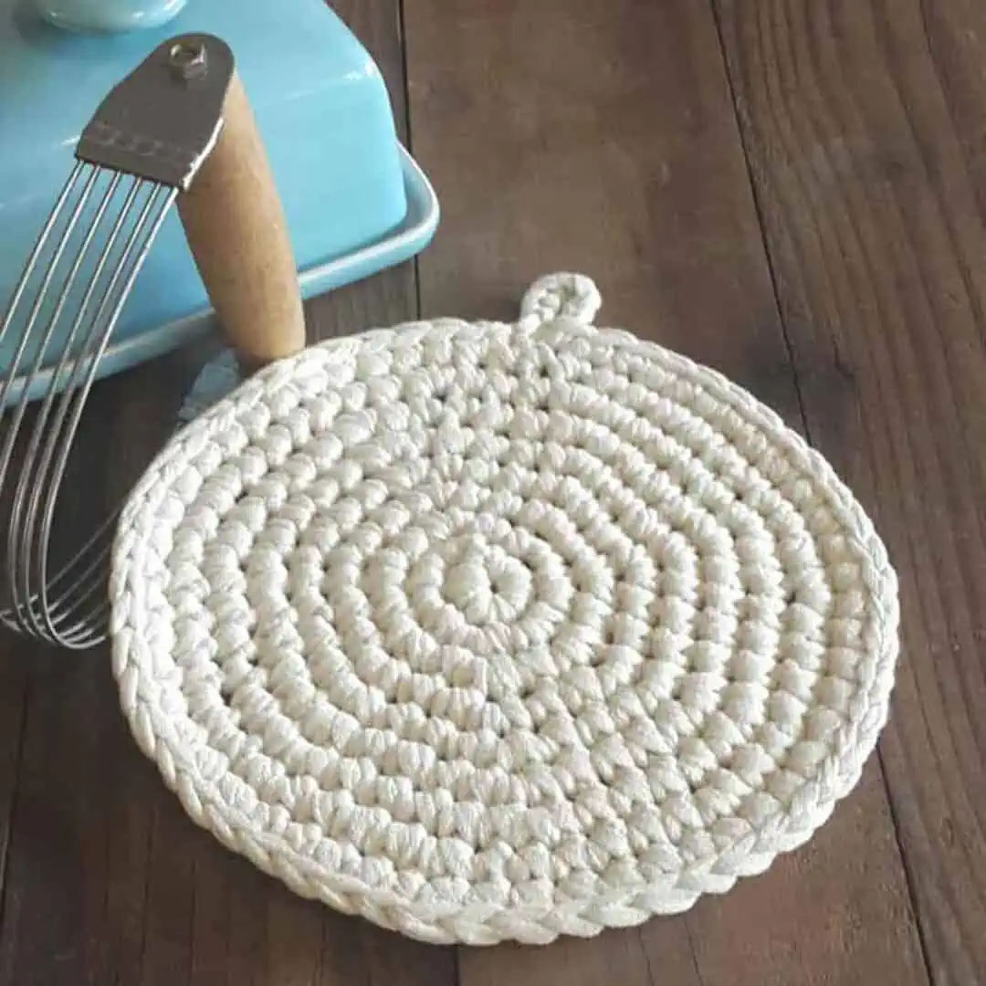 Overall, cotton yarn is a better bet with crochet hot pads. Cotton yarn is able to withstand a lot more heat and doesn’t run the risk of burning when hot items are placed on them. Plus, you’ll want it to be machine washable since it’s very likely they’ll get dirty and be spilled upon.