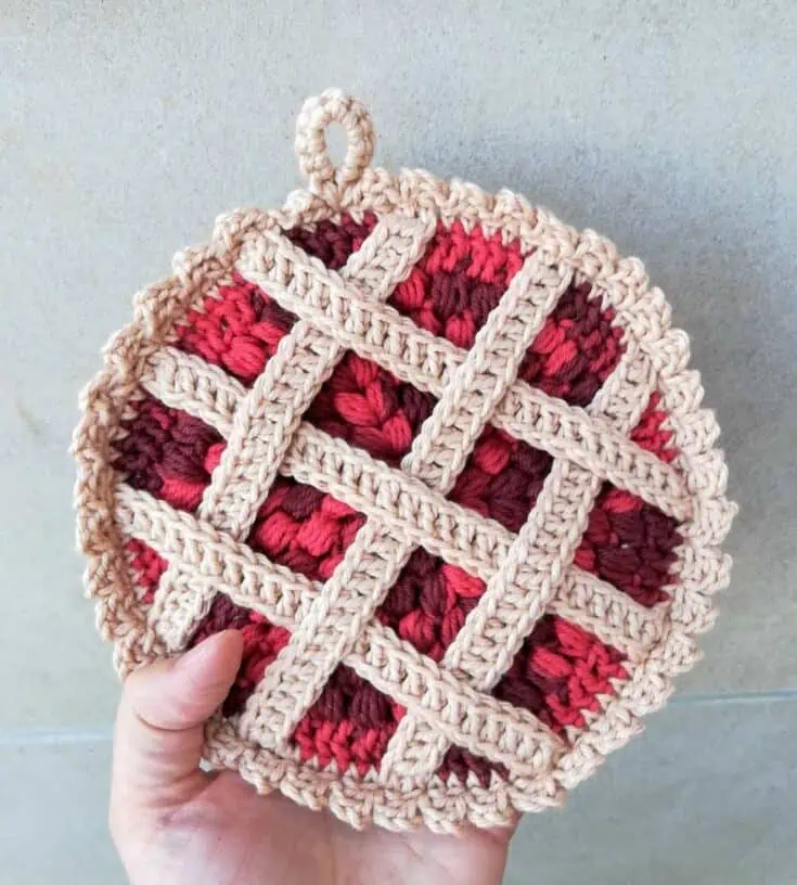 This beautiful crochet potholder is such a fun design! I love that this is a layered potholder and gives it more dimension. We often serve cherry pie as one of our Thanksgiving options and this would look so great in our holiday spread!