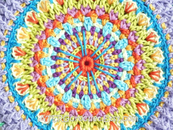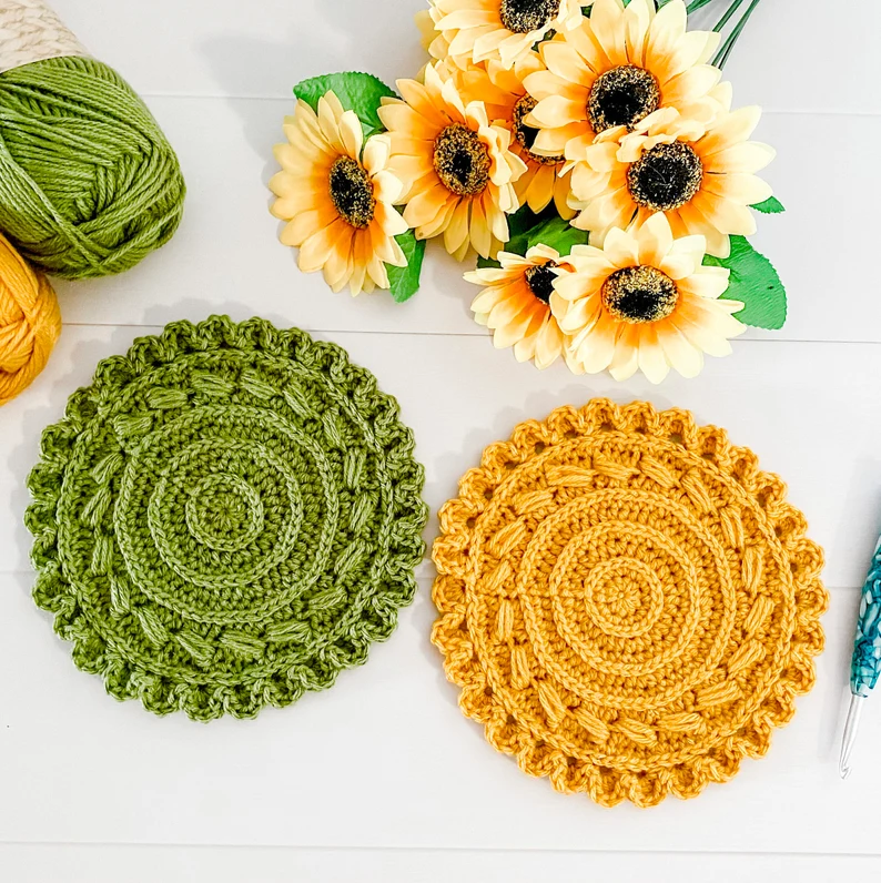 If you've been looking to practice your puff stitch, this beautiful pattern is perfect for crochet inspiration for the summer! I love that it looks like a little sun. But I also love that you can also match it to whatever color scheme you already have going on in your home.