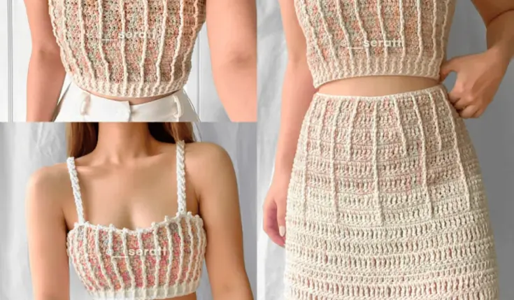 With a crocheted tank, a crochet bralette, and a matching skirt, this beautiful pattern has everything! This is an advanced beginner pattern so it will be a great way to sharpen your skills.