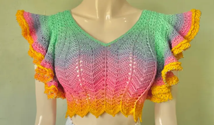 If you made this top longer, I could see this being such a cute crochet business top. This top is just breathtaking! If you are not an experienced crocheter, this pattern also includes a YouTube video tutorial to help you along the way.