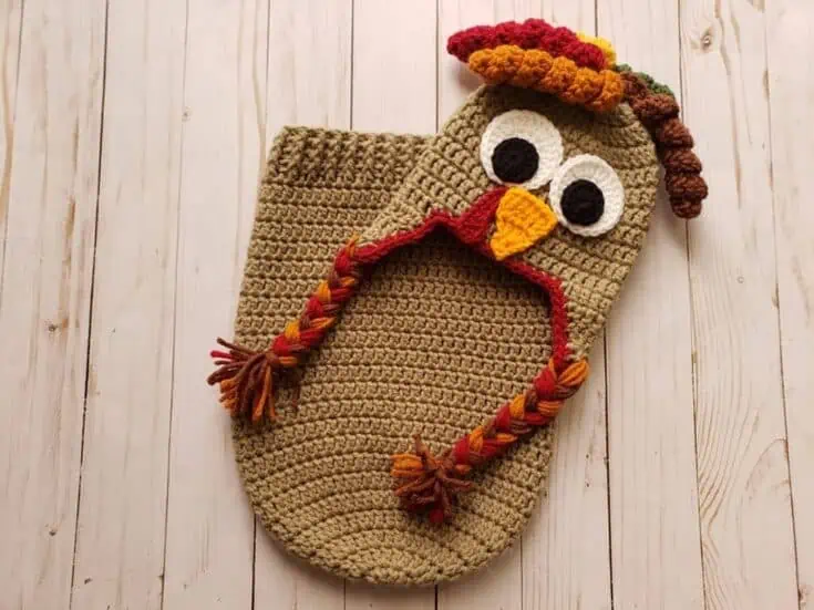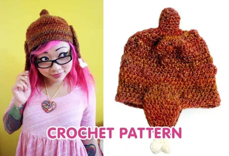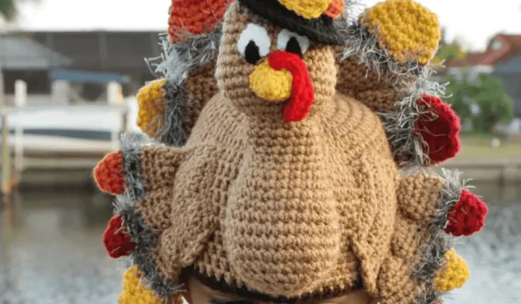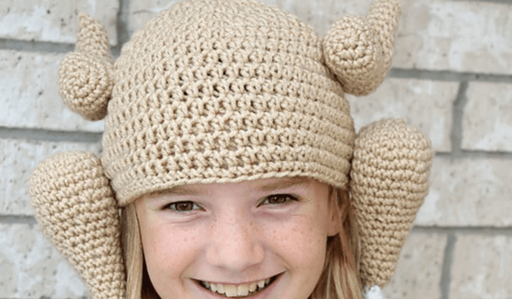 If you’re looking for a realistic cooked turkey hat, this hat by Twinkie Chan is super cute! Plus, it's an earflap hat with turkey legs as the ear covers! What a fun and cute crochet turkey hat!