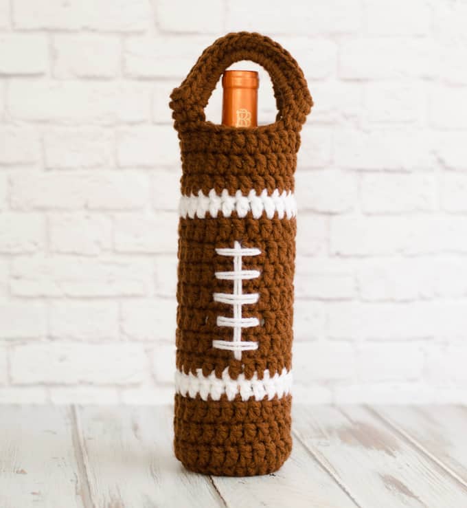 Did you love this fast and easy Crochet Football Wine Cozy? There are wine cozies for just about every occasion right here on the blog! Check them all out here!